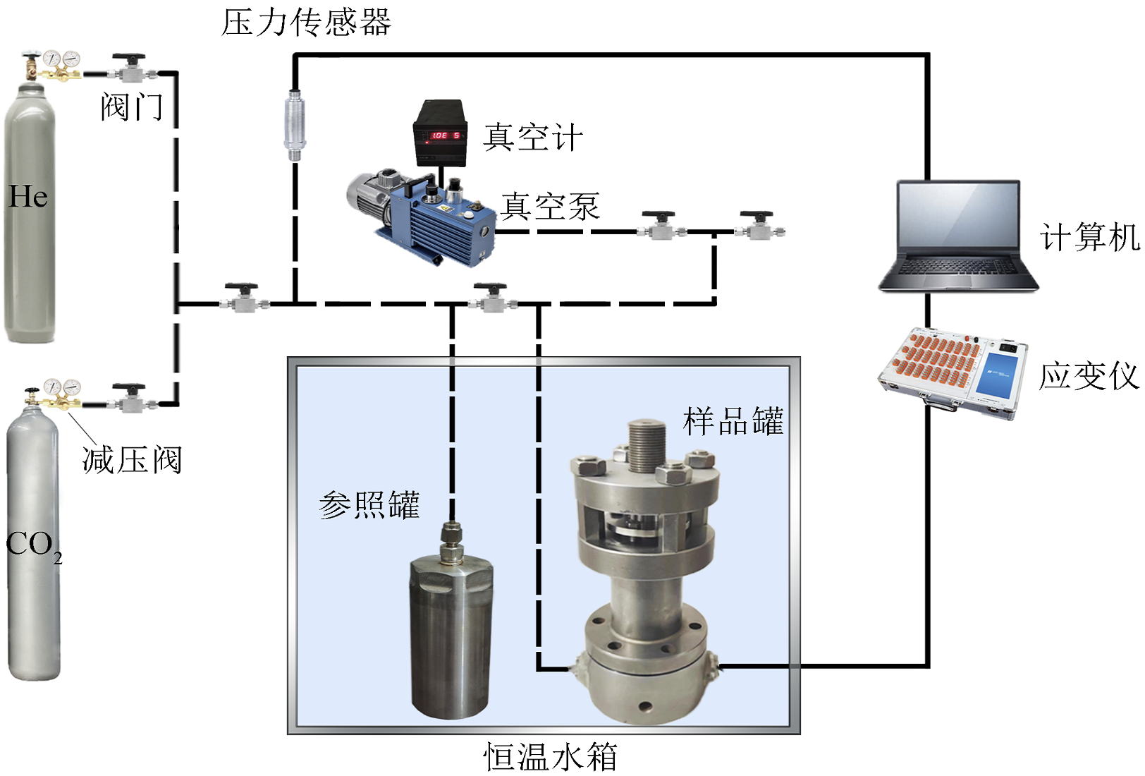 利用自主研制的吸附膨胀应力测试装置,可以有效测量煤岩试件在单轴限位、双轴限位和三轴限位条件下的各向膨胀应力。        可以开展不同条件下的吸附膨胀应力实验,获得煤岩吸附/解吸过程中的膨胀应力动态演化特征,结合等温吸附/解吸变形特征实验结果,可以研究分析煤岩膨胀应力与应变的定量关系、应力演化机理及不同因素影响机理。